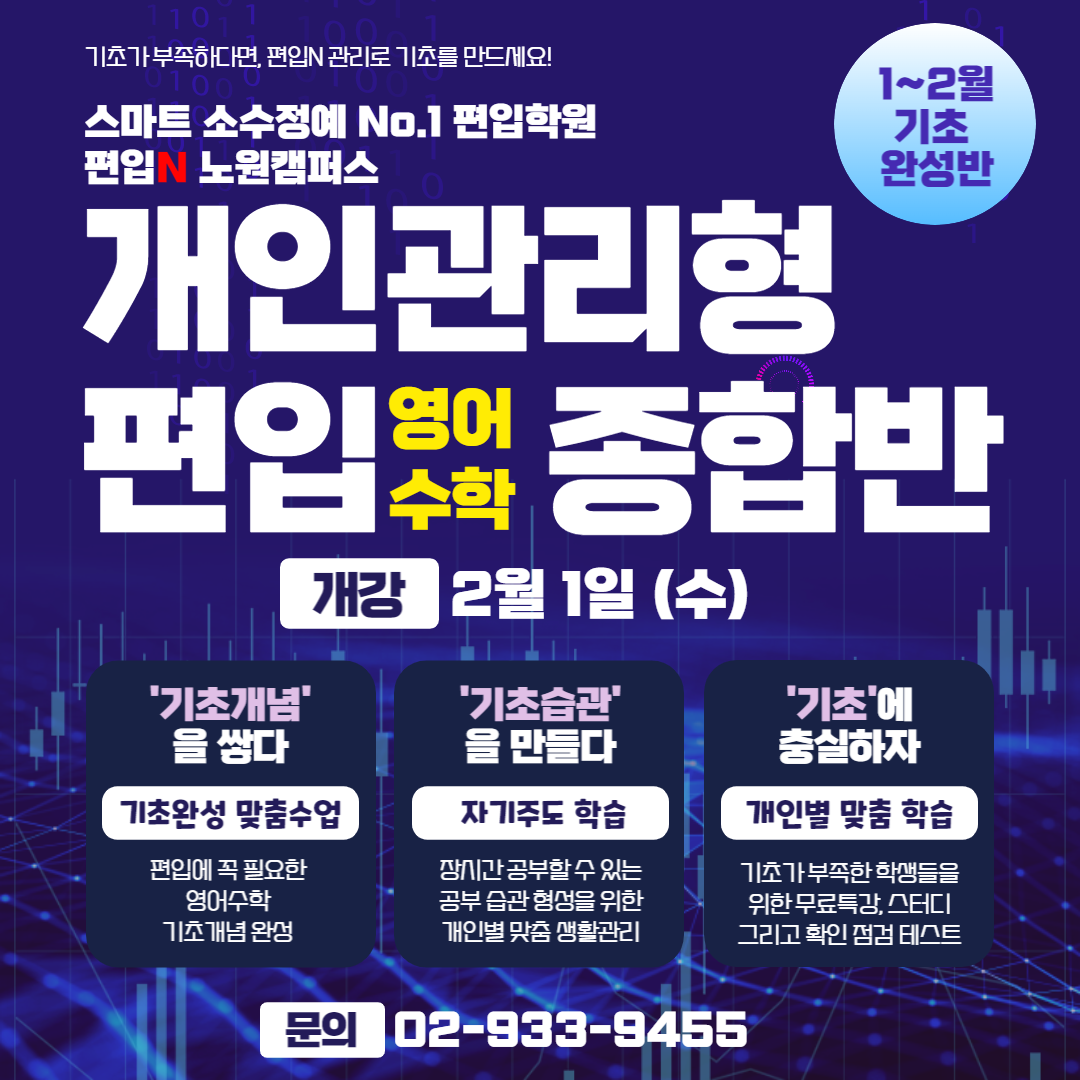 개인관리형 편입영어&편입수학 종합반 2월 개강 안내 [2월 1일 대개강]