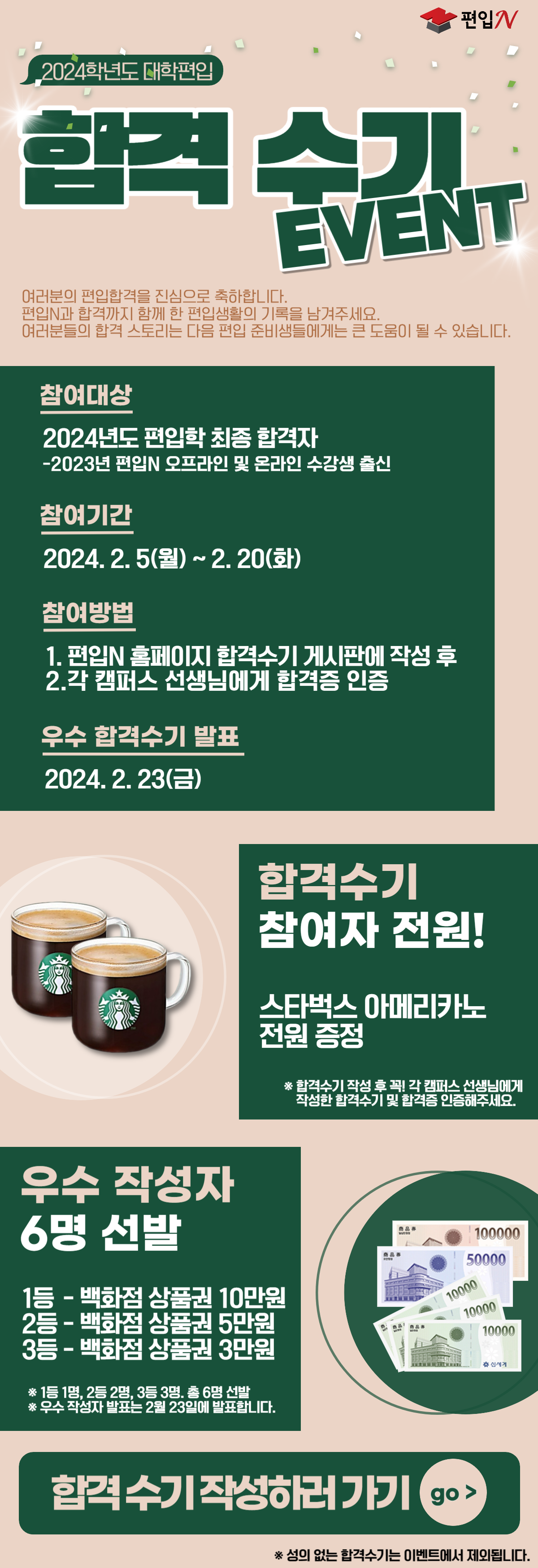 2024학년도 대학편입 합격수기 EVENT [2024. 2. 5(월) ~ 2. 20(화)]